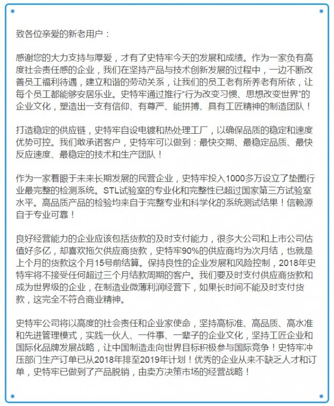 史特牢市场调整:严控结款风险终止帐期三个月以上的合作