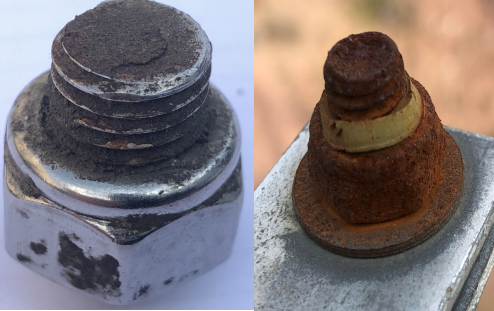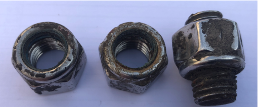 尼龙防松螺母正常安装图 尼龙防松螺母胀圈引发生锈图