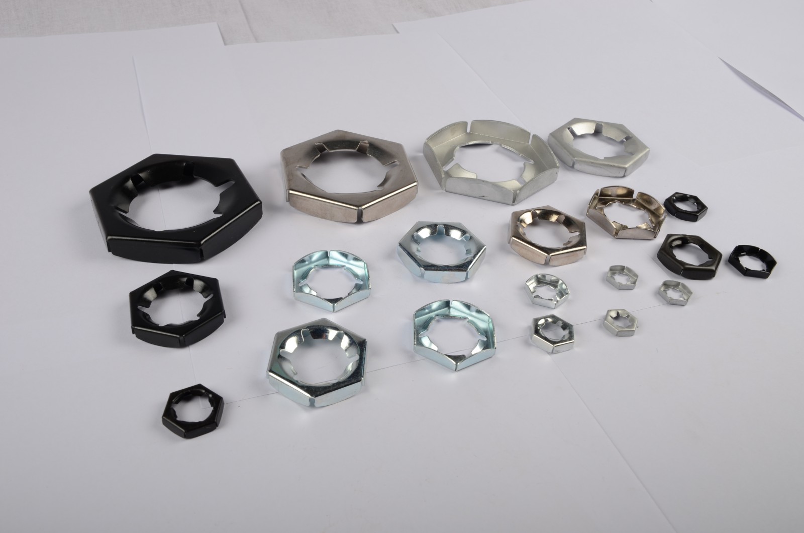 国标GB805扣紧螺母,65MN材质/硬化达克罗涂层处理!采用冲压工艺,常用M6-M48型号都有现货!JYD品牌扣紧螺母品质相对专业,功能及外观与一般性市面扣紧螺母有明显品质差别!欢迎索取样品比较!