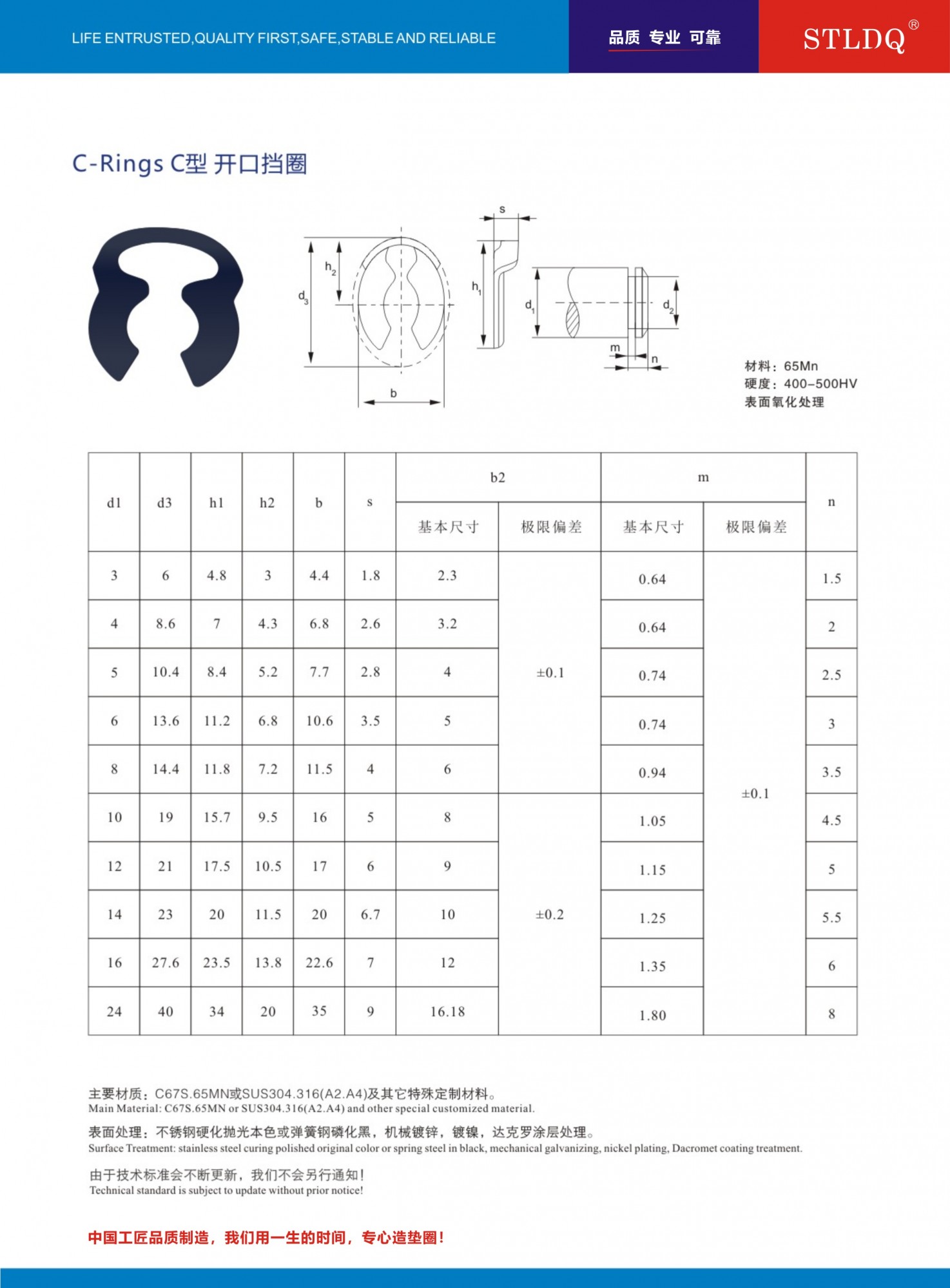 CR型开口挡圈,M3-M24规格     65mn材质      表面处理:磷化黑色