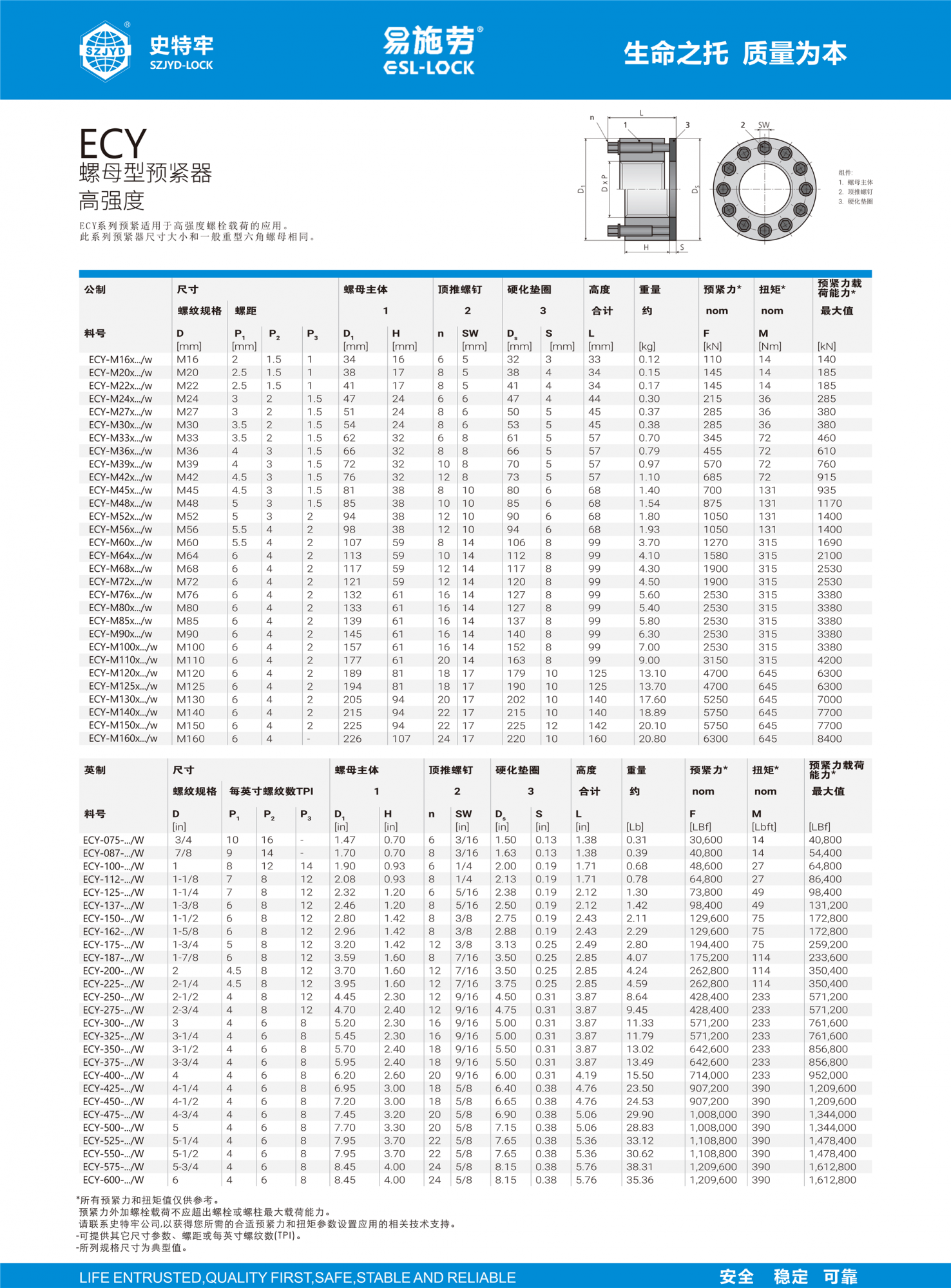 多顶推超级预紧器,可在很小空间安装,使用简单工具即可轻松预紧,节省安装时间,ESL-LOCK品牌易施劳超级螺母具有完全的防松锁紧功能,可多次拆卸重复使用。特别适用于M24规格以上大型螺栓锁紧!一拧永固,永不松动!使用常规格为合金材料及特殊不锈钢合金材料以及镍基合金材料!更多了解欢迎咨询我们.....